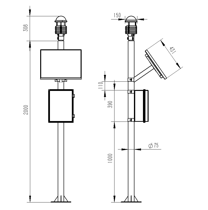 5.两米碳钢板固定架,壳体不需法兰片盘可简单套接感知器